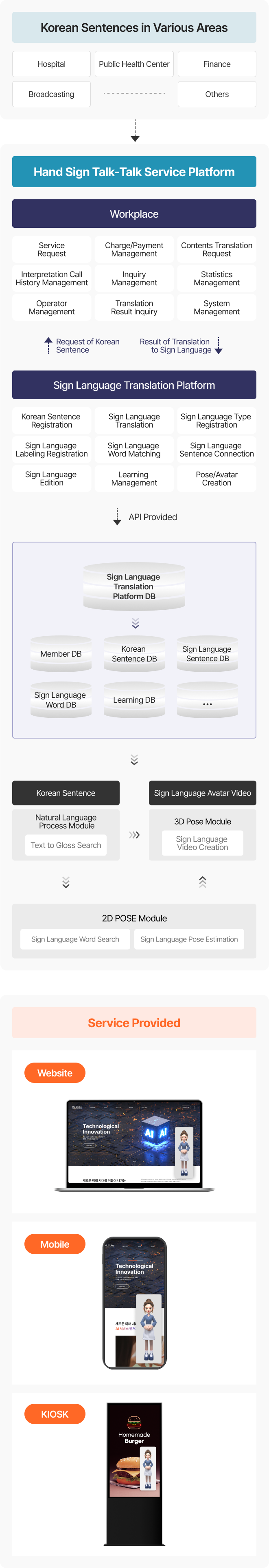 Through such functions, sign language 3D Avatar video will be created to provide the service to various devices with API function.